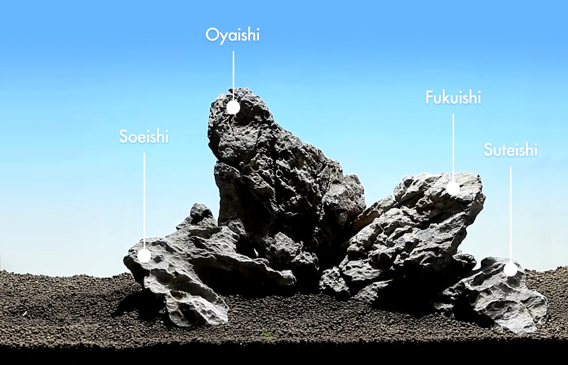 Regardless of their number, each stone in the Iwagumi layout has a name and a specific role: