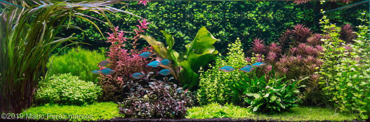 This type of Nature Aquarium theme usually fills the whole area of the tank with the only open space visible being the end point. By far the most skilled aquascapers that engage with this theme originate from Southeast Asia (Indonesia, Thailand, Malaysia).
